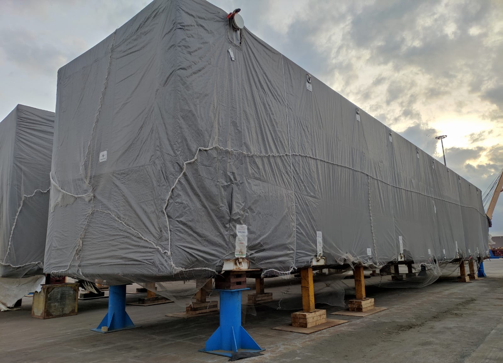 The road transport from the port to the final delivery site covered around 10 kilometers. However, due to the extraordinary dimensions of the convoy, extensive coordination was required among all the involved authorities, including the port terminal, traffic and port police, and the road department. This coordination was essential to facilitate the departure of the transport convoy from the port and to block all traffic in both directions to avoid critical height restrictions.